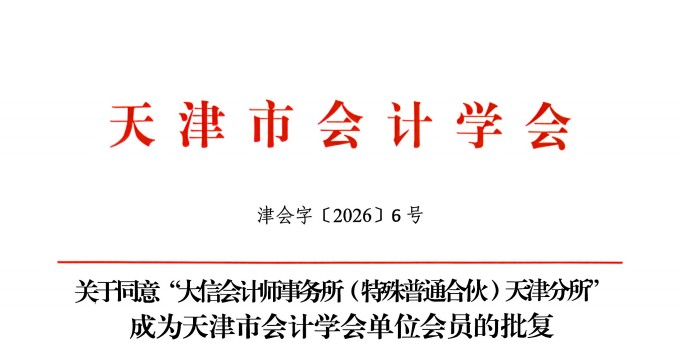 关于同意“大信会计师事务所(特殊普通合伙)天津分所”成为天津市会计学会单位会员的批复