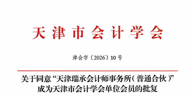 关于同意“天津瑞承会计师事务所(普通合伙)”成为天津市会计学会单位会员的批复